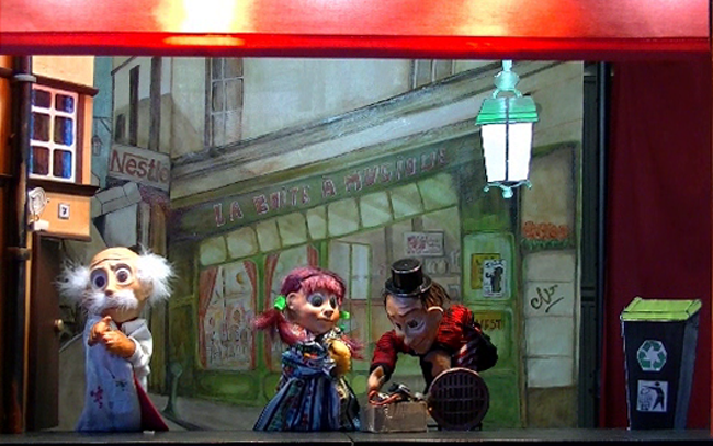 Le spectacle est présenté sous forme d’un castelet de bois rouge dans la tradition du Guignol.